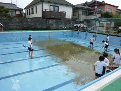 今日17日の午後から5年生と6年生がプールをきれいにしてくれました。