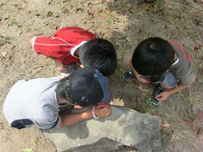 石の下や木の下,草むらなどいろいろなところを探していました。