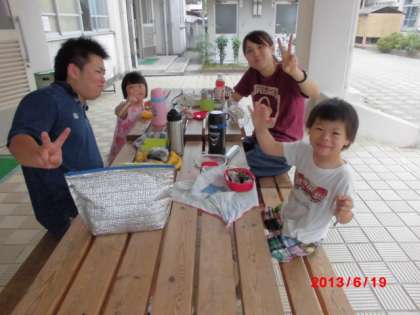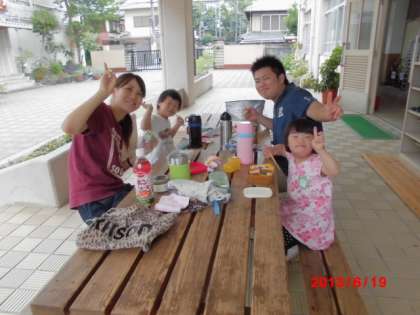今日は、育成合同遠足の予定でしたが雨のため延期になりました。残念です。お弁当を中庭のベンチで食べました。