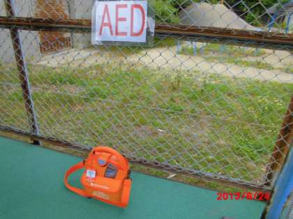 本校では,水泳学習を安全に進めるためにプールサイドに「AED」を設置したり、監視人数を増やすなど万全を期しています。