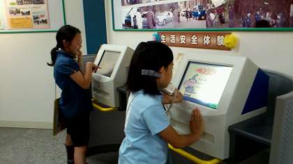 自転車のシュミレーターなどもあり,行列を作って体験していました。