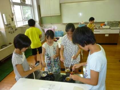 あと2つ。絵画・工作クラブでは、自分の好きな絵を描いていました。そして最後に理科クラブ。家庭科室から甘い香り?重曹や砂糖を使って、カルメ焼きを作っていました。一人ひとりがたまじゃくしを持って、実験?制作?をしていました。クラブ活動は、4年・5年・6年の異学年の児童が、共に活動しています。前期と後期に分かれています。