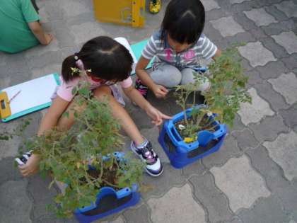 1ミリほどしかなかった種から上にも下にもぐんぐん伸び育っていたミニトマトに驚いている子どもがいっぱいでした。