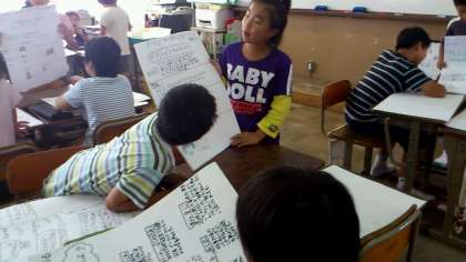 ポスターには絵や登場人物の紹介,あらすじ,見どころなどが書かれており,ただ紹介するよりもわかりやすい発表になりました。