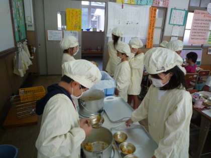 2年生最初は準備も動きもとってもゆるやかで,おいしく給食をいただく時間がとれませんでしたが,最近は30分ほどとることができるようになり,ゆっくりおいしくいただくことができるようになりました!