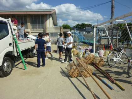 明日の運動会のためにたくさんの地域の方々が準備に来られています。ご苦労様です。第61回紫明学区民親睦大運動会は、10月13日(日)9時から行われます。附属中学校のグラウンドであります。きっといいお天気になることでしょう。楽しみです。