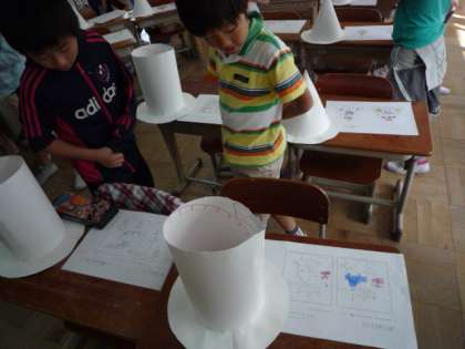 シルクハットバージョンと,さんかくぼうしバージョンがあり,自分たちでどちらにするか決めて作っています。