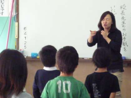 日頃から大きな声を出すことができる子どもたちですが,音量が十分でも,口形が上手にできないと,何を言っているかわからなくなります。