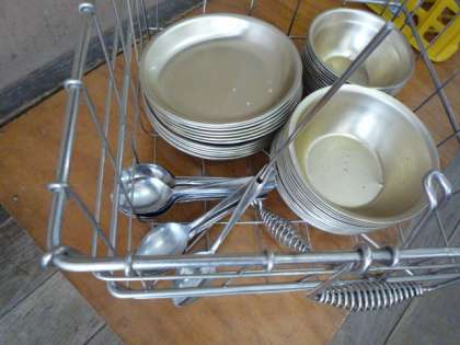 今日の給食の食器をかごに返す時,子どもたちは食器が傷まないようにそうっと下して重ねます。