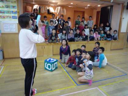 体全体をつかう「おもしろすごろく」をしたり,園内を案内してもらったり,一緒に本を読み合ったりして,とっても楽しい時間を過ごすことができました。