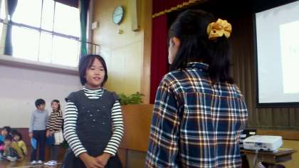 全校児童の前で発表するわけですから,緊張しないわけがありません。子どもたちのドキドキと緊張する音が聞こえてきそうです。