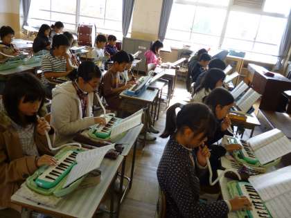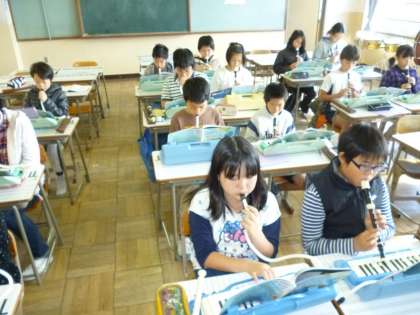 音楽では,鍵盤ハーモニカとリコーダーの合奏をしています。
