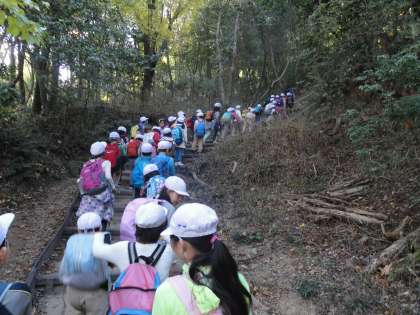 登山中は「ファイト〜」→(みんなで)「一発!」,「ひらけ〜」→「ゴマ!」,「いつ登るの?」→「今でしょ!」など大きな声を出しながら,登っていました。だからでしょうか…予定よりもとても早く頂上に着きました。