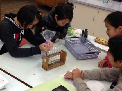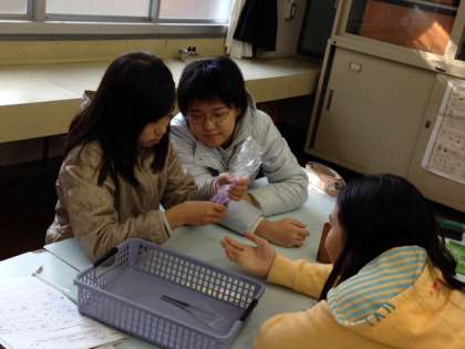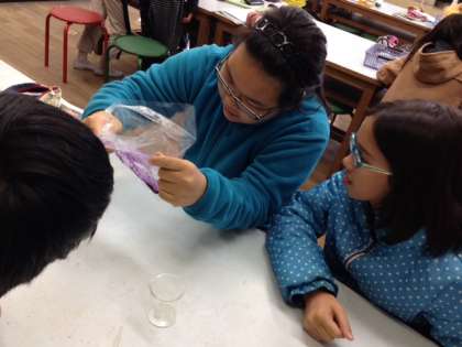 紫キャベツからとった液で,水溶液の性質をしらべます。