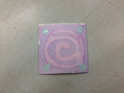 実験の結果をまとめた後は,キャベツの液を染み込ませた紙に,水溶液を使って絵を描きました。