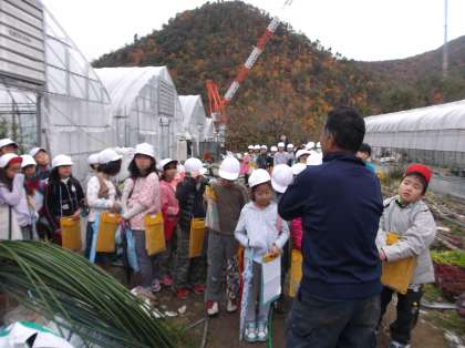 今日は,社会見学で鷹峯の農家,樋口さんを訪ねました。