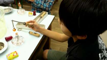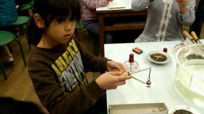 温める前は鉄の枠の中をとおっていたのが,温めると通らなくなることにびっくり。一度前で見せたにもかかわらず,実際に自分でやってみると
