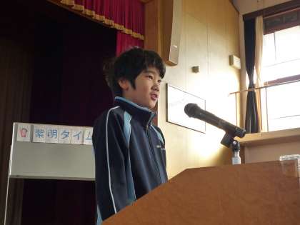 緊張していたようですが,全校児童の前で,自分の言葉で伝えることがでました。