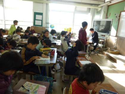 5年生では、今年の目標を一文字で表すと・・・と考えていました。「挑戦する・・・挑」「いい態度で臨めるように・・・態」など一人ひとりの思いがいっぱいこめられていました。