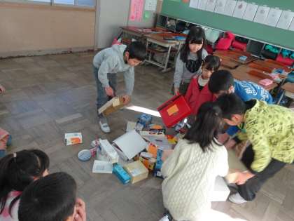 集めた空き箱を使って,どこのチームが1番高く積むことが出来るのか競争をしました。最初は,他のチームの積み方を研究していました。しかし,最後には,他のチームのタワーを見て「がんばれ。もう少しで1メートル!」と言って応援していました。勝敗はつきましたが,一番高くできたタワーを見て,みんな喜んでいました!