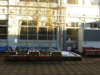 今朝はうっすら雪景色。小さな雪を丸めてきた子、さあ、学校の運動場どうなっているかなと嬉しそうにやってくる子でにぎやかな登校になりました。「つるんと滑ったよ。」と話してくれる子もいました。寒さなんてへっちゃら?