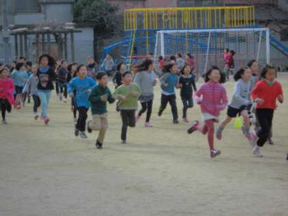 1月23日(木)の適応マラソンに向けて、子どもたちは業間マラソンを毎日がんばって走っています。少しでも記録が伸びるよう、声をかけあって走っています。