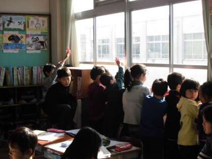 教室にもどると,窓際に行き,手をあたためていました。