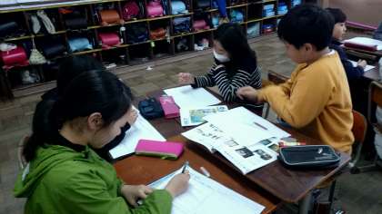 この日は,どんなドリームカーにするか,イメージをふくらませます。班でどんなものをつくることができるか,アイデアを出し合いました。