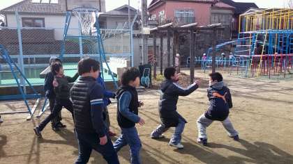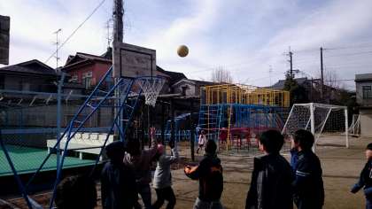 バスケ部活の子が練習をしていたところ,どんどんと人数が増えていったということです。仲良く遊ぶ姿をたくさん見ることができてうれしい限りです。