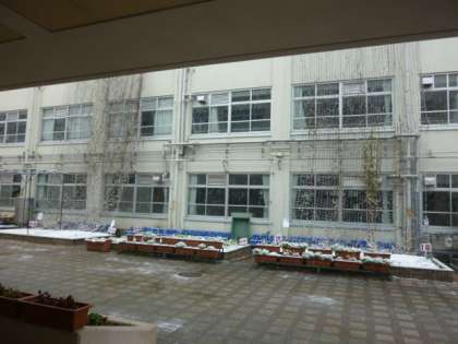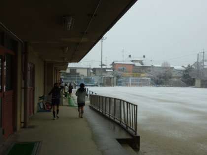 朝から雪です。積もっていくかもしれません。寒い朝です。5年6年の朝練習は、体育館で走っています。頑張っています。雪だるまが作れるでしょうか?