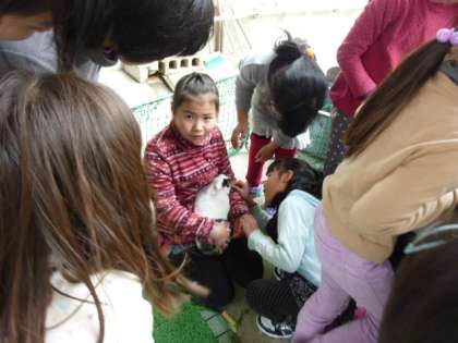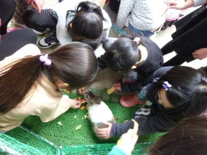 今週、中間休みに、飼育委員会がふれあい広場をしています。うさぎさんとなかよしになろうという取り組みです。うさぎ大人気です。