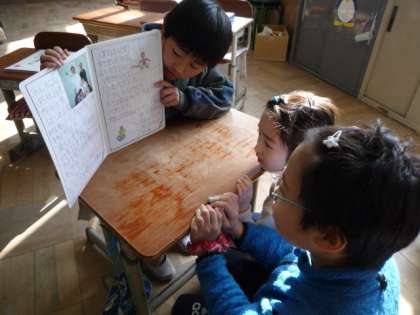 生活科で作っている「マイブック」の交流を行いました。