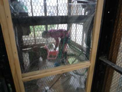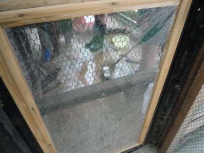 飼育小屋の掃除は,ご飯をあげることと,糞等の掃除をすることなのですが,バケツで水を汲み,ブラシで床をゴシゴシこすって汚れをとってくれています。とってもきれいになっていました。