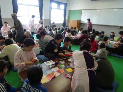 今日は,地域の方に来ていただいて,おりがみでひな人形を折りました。子どもたちは,どんなふうに作るのかワクワクしていました。