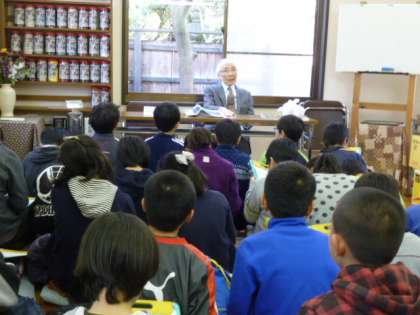 5年生が総合の学習で中溝町にある重山文庫に行ってきました。広辞苑を作られた新村出さんの生き方、広辞苑を作られるにあたっての様子などをお孫さんに聞かせていただきました。熱い思いに触れることができました。5年生もオリジナル辞典を作成中です。