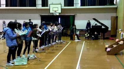 写真は音楽部活に参加する四年生の写真と六年生を見送る時のものです。