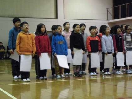 6年生を送る会がありました。3年生は,歌「雨のち晴レルヤ」とメッセージを送りました。お世話になった6年生に気持ちを届けました。6年生が笑顔の似顔絵を見た時に,笑顔になってくれ,とてもうれしくなりました。