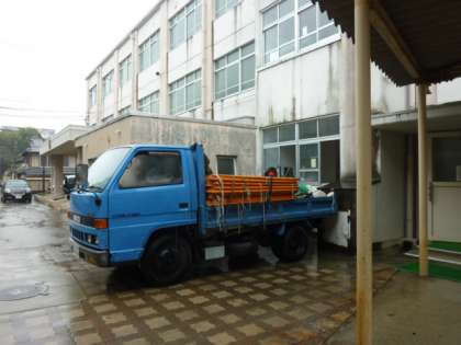 先週から壁の工事が始まっています。天候にも左右されるのでその日によって進み具合が違います。そんなふうにするんだなと工事の様子を見ている子もいます。