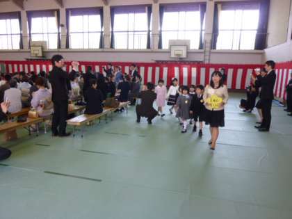 入学式が終わりました。堂々と退場する姿、立派でした。とってもかわいかったです。そのあと、記念写真を撮ったり、教室でお話を聞いたりしました。暖かくて桜もきれいで、元気いっぱいの1年生で素敵な入学式となりました。今後ともよろしくお願いします。保護者の方々、地域の方々、育友会の方々ありがとうございました。