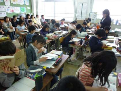 今日の授業参観では、6年は社会で縄文時代と弥生時代について比べていました。そして「米作りの良さ」について考えていました。5年は、漢字がどんなふうにできているのか、漢字辞典を使って考えていました。グループでの話し合いもしていました。みんな張り切っていました。明日は、低学年の参観日です。どんどんご来校ください。