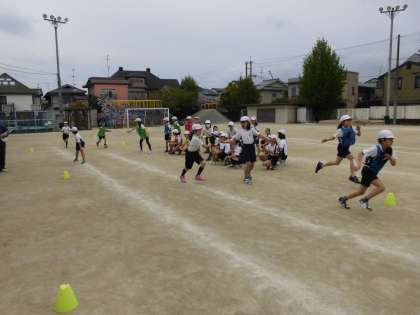 体育の学習でリレーをしています。3回目の今日は,1組対2組のリレーカーニバルでした。応援中は,クラスもチームも関係なく声かけたり,ゴール後はすべてのチームに拍手をするなど温かく時間が過ぎていました。試合中は,バトンをつなごうと一所懸命走っていました。バトンパスが重要なリレーでどんどん上達していく姿が見られました。次は,6回目に第2回リレーカーニバルです。とても楽しみですね。