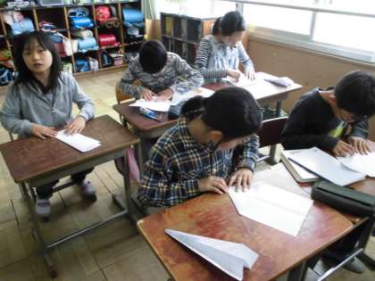 22日(火)のお昼休みに,実験係が考えてくれた「紙ひこうき大会」をしました。紙ひこうきをどれだけ長く,空中でとばせるかを競います。紙ひこうきのおり方を調べてきた子や事前にためしている子もおり,みんなやる気満々でした。優勝した班は,とてもうれしそうでした。楽しいお昼休みでした。