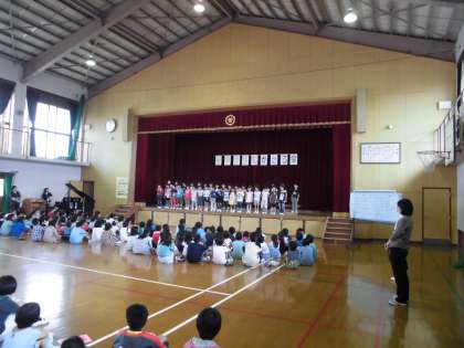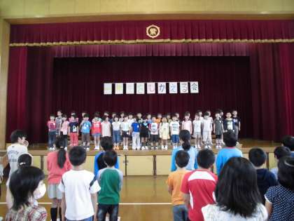 とても元気でかわいい姿を全校のみんなに見てもらいました。