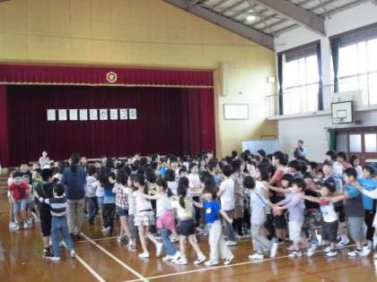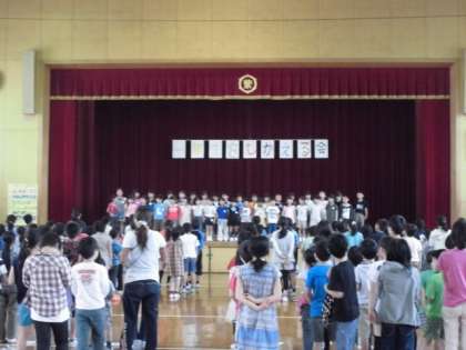 1年生をむかえる会のゲームは「紫明○×クイズ」と「貨物列車」です。計画委員さんが一生懸命考えたゲーム。みんな,とても楽しんでくれていました。次の縦割り活動は,23日(金)のたてわり遠足(植物園)です。5・6年生のリーダー,がんばろうね!