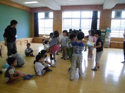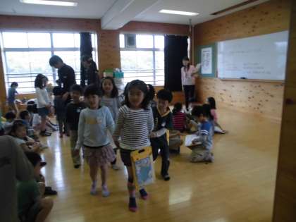2年生がやさしく手をひいてくれています。