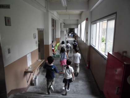 2年生と仲よく校舎の中や,体育館,プールと学校中をめぐりました。