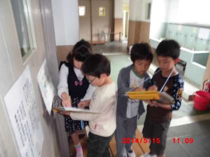 一年生に学校のひみつをいっぱい教えよう!というめあてでがんばっていました。説明し忘れた部屋には,わざわざ戻って説明を付け足す姿も見られました。一年生もよろこんでくれて,二年生もにこにこしていました。気を遣ってつかれた〜と言っている子もいました。良いお兄さんお姉さんでした^^