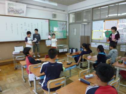 委員会活動の続きです。図書・・・図書の本の貸し出しや読み聞かせ、素敵なわくわくする図書室に変身させます。放送・・・給食時間にお昼の放送を担当します。イングリッシュコーナーもあります。飼育、園芸・・・ウサギのお世話や、動物、植物についてお知らせをします。みんな力を合わせて頑張りましょう。