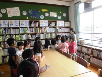 今日は,図書館支援員の浦先生から図書室の使い方を