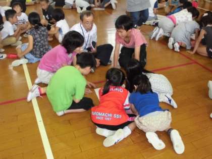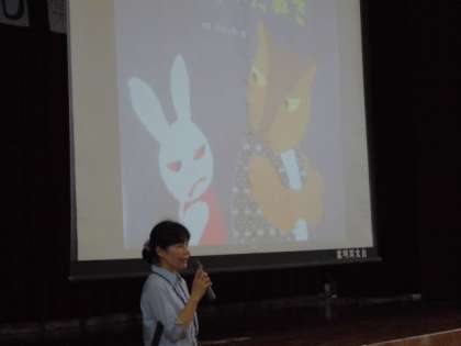 次に、「となりのたぬき」の読み聞かせを聞き、たてわりグループで人を大切にすることについて話し合いを持ちました。保護者の中からも貴重なご意見をいただきました。